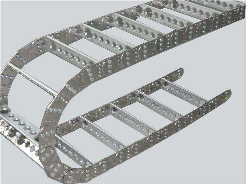 鋼鋁拖鏈的主體是由鏈扳支撐扳軸銷等部件組成,使電纜或橡膠管與拖鏈之間不發生相對運動,不發生歪曲變形,鏈扳經鍍鉻處置外形效果新穎布局合理,靈敏強度高,鋼性好不變形,裝置便利,運用牢靠,易拆裝,尤其是選用高強度耐磨材料,合金銅為軸銷,提高了商品的耐磨強度,曲折更靈敏,阻力更小,降低了噪音,然后可確保長時間運用不變形,不下垂.鋼鋁拖鏈外觀精巧,可在較大程度上增強機床設備的全體藝術漂亮效果,增強中國機床,機械設備在國際市場的競爭能力.鋼鋁拖鏈:通常應用在機床機械等的電纜,油管,氣管,水管,風管上,起牽引和維護效果.鋼鋁拖鏈:通常應用在機床機械等的電纜,油管,氣管,水管,風管上,起牽引和維護效果。